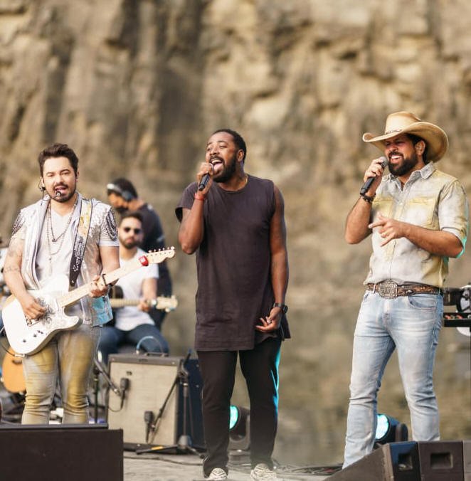 A antiga pedreira de Jaguariúna, região de Campinas, no interior de São Paulo, foi palco para a superprodução da dupla Fernando e Sorocaba, uma das maiores do sertanejo. O local também inspirou o nome que intitula a live, “A Rocha”.